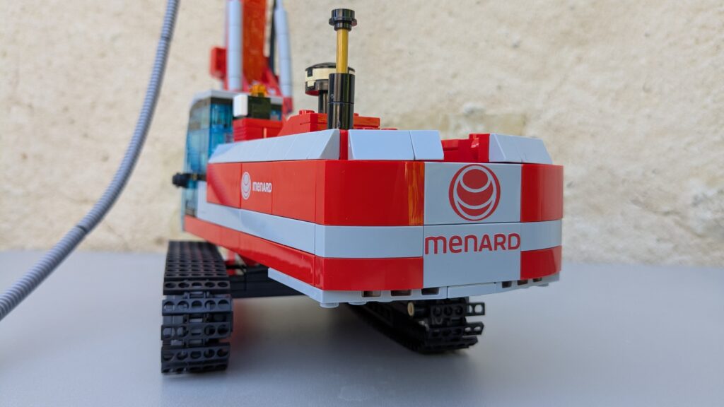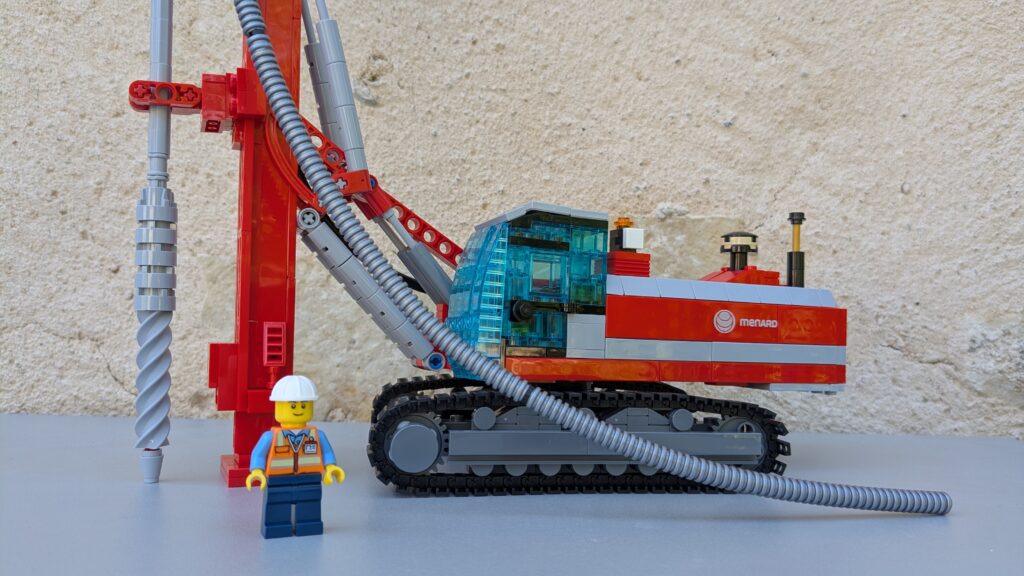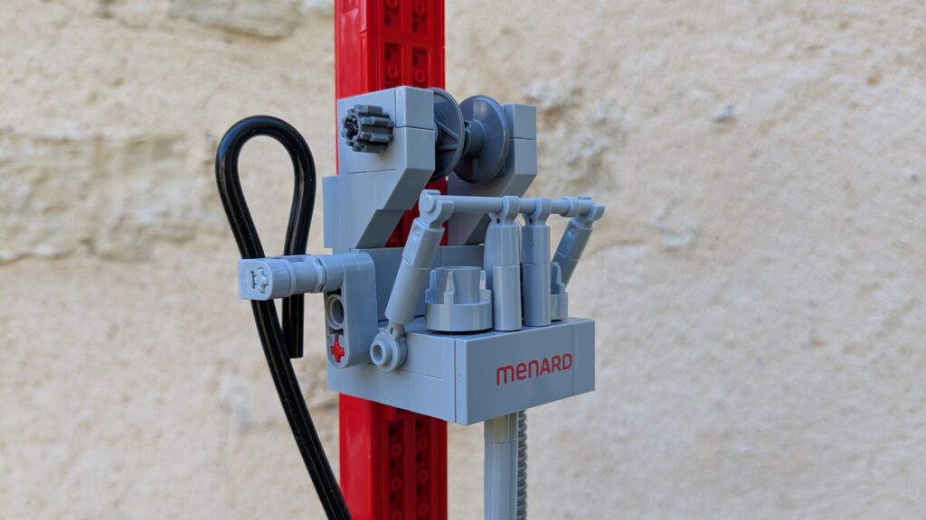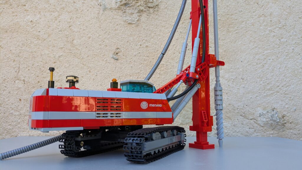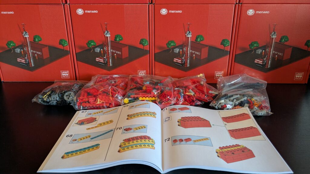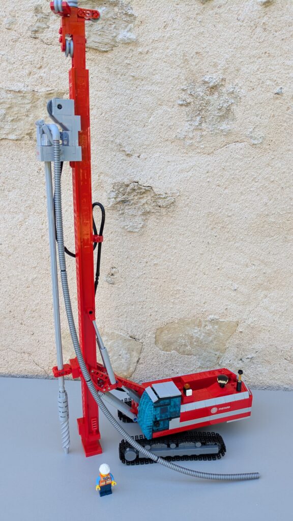 J’ai produit plus de 200 boîtes personnalisées permettant de construire une foreuse. Elles sont composées de 969 pièces LEGO® et d’une notice de montage. La foreuse mesure 60 cm de haut une fois construite !
